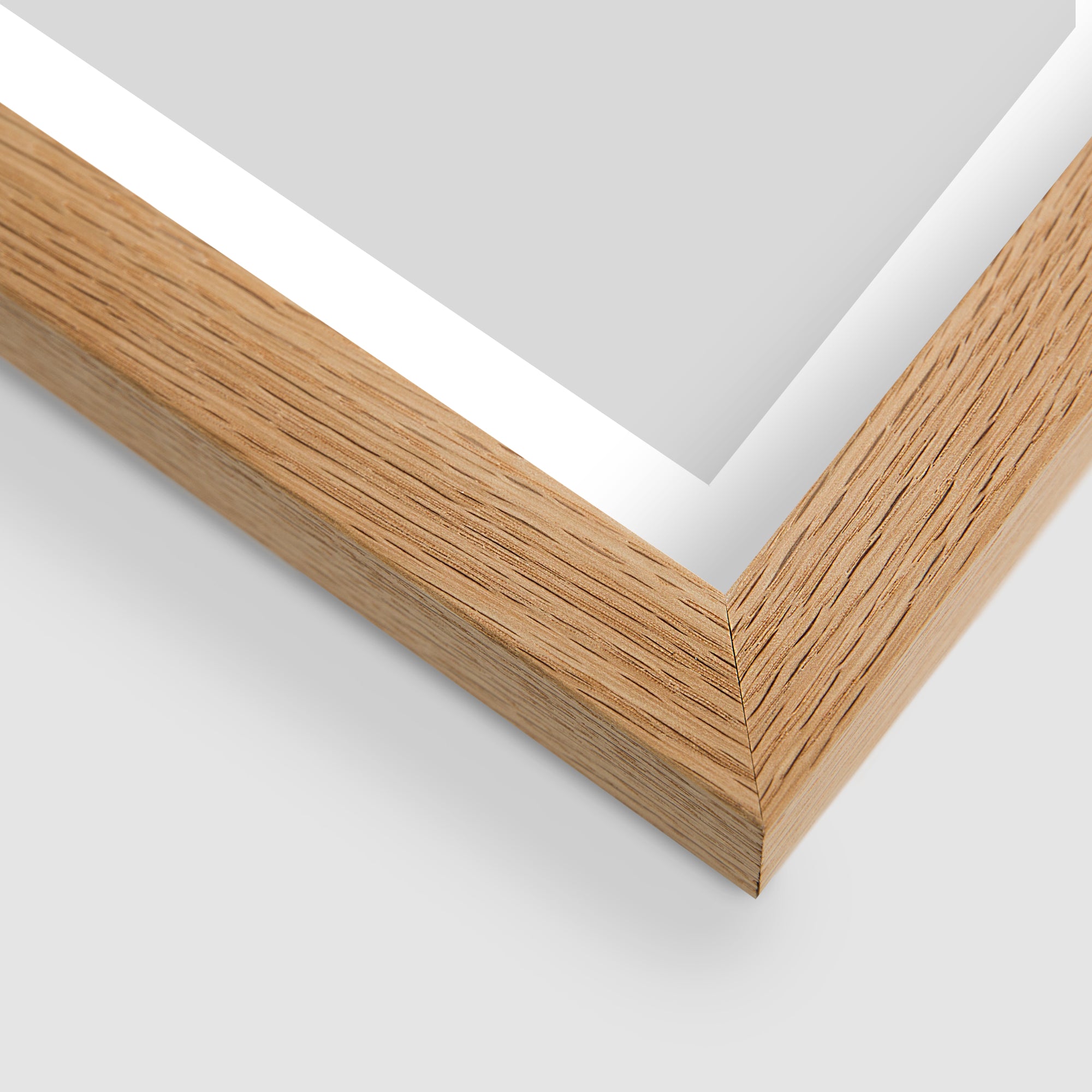 Bring out the best in your artwork with our perfect fit, acrylite front protected wooden frames. The black and white frames are made from ayous wood, while the oak frame is made from solid oak. Hanging hardware included and your poster will arrive already framed!